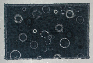 Happy New Year!! I really don't work much in black & white so I thought I'd give it a try. All of these stitched round circles have been done with a Flower Stitch Foot. You attach the foot to your sewing machine like you would any other presser foot, pick the stitch & away you go. Most of these have been done with a zig zag stitch, however on my sewing machine, there is a heart shaped stitch which I used in the 2nd photo (in gray, up in the top left area). I'd like to try using a wash away stabilizer so the centers of these circles would be open & one could see through them.